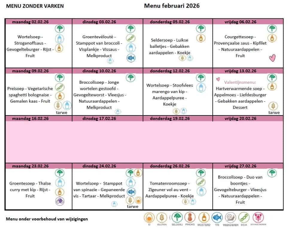 Menu februari 2026