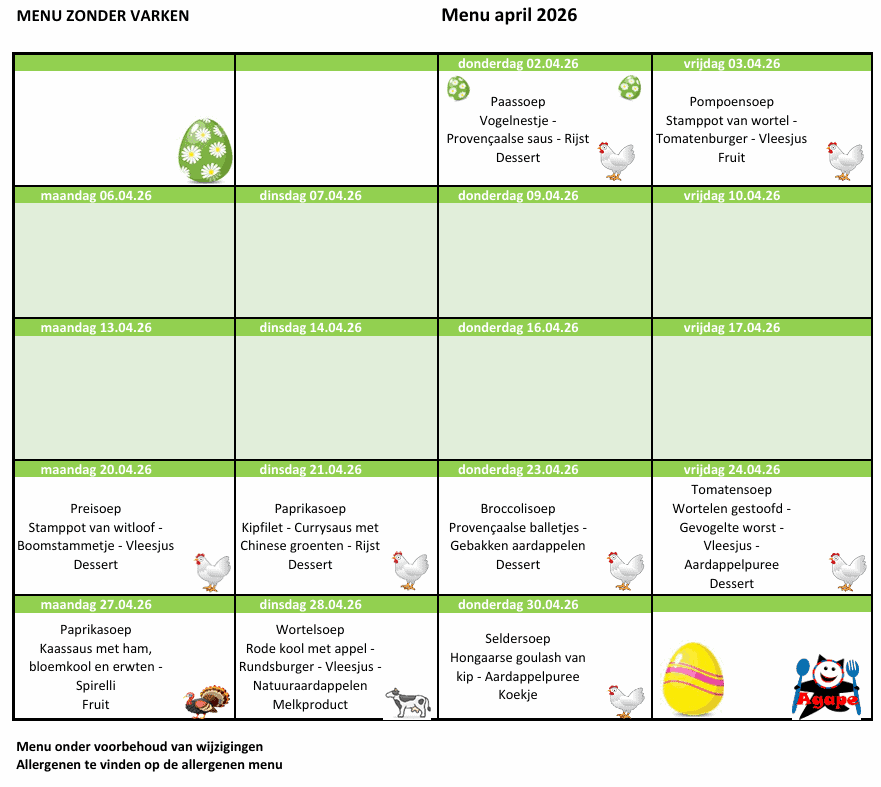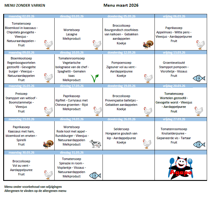 Dit schooljaar werkt onze school samen met de catering ‘Agape’.